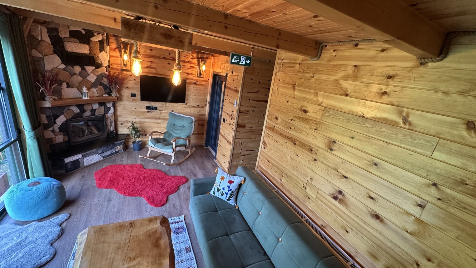 Yataklar : 1 adet çekyat (değişken büyüklükte), 1 adet büyük çift kişilik yatak (151-180cm genişliğinde).