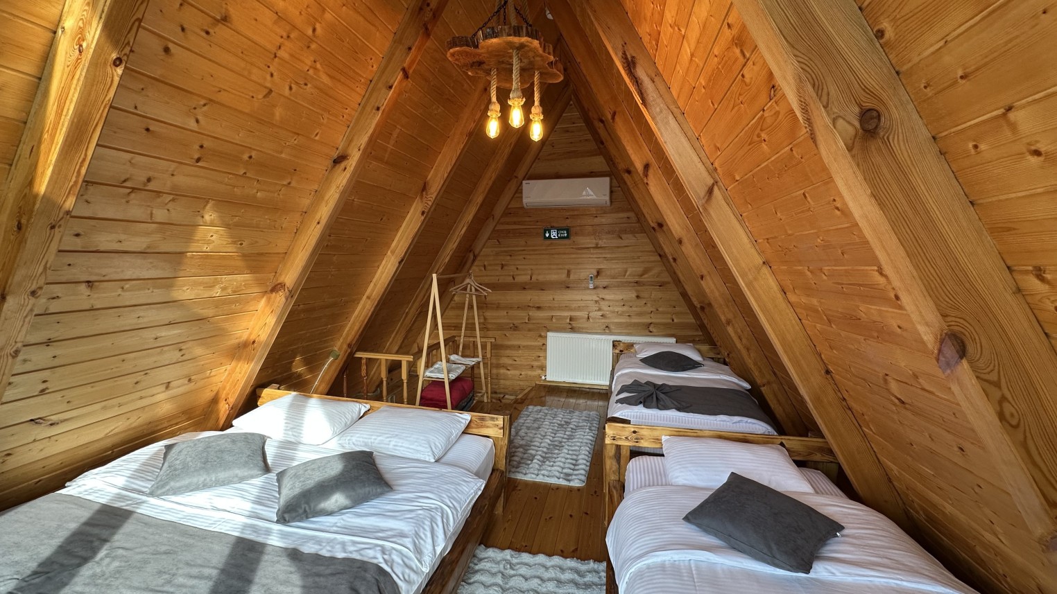 Yataklar : 2 adet tek kişilik yatak (90-130 cm genişliğinde), 1 adet çift kişilik yatak (131-150 cm genişliğinde), 1 adet çekyat (değişken boy).